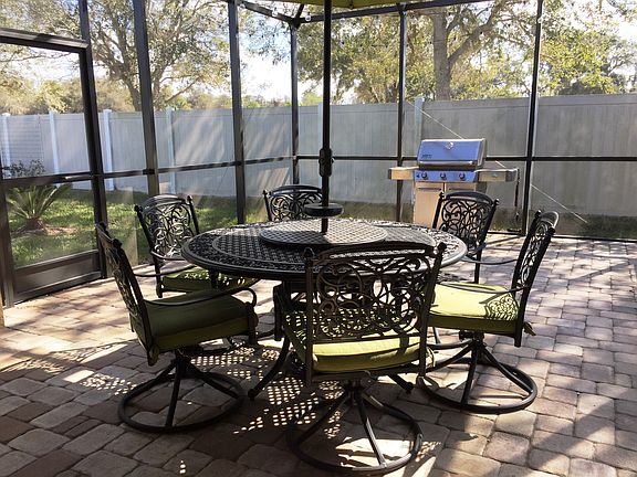 This open floor plan features spacious kitchen with large island which is open to a large great room. Kitchen has upgraded cabinets and granite tops! All stainless steel kitchen appliances included in price (even the side by side refrigerator)! Built with Den with French Door option instead of Dining Room. 20x20 tile throughout all main living areas. Large walk in shower with decorative wall tile in Master Bathroom, with double sinks. Tray ceiling in Family Room. Laundry room in hallway near two bedrooms. Slider in family room completely opens up room to a nice private yard (fenced at the rear). Screened Lanai and Paver Patio. Includes large 2 car garage with remote. Irrigation front and back yards with timer and separate meter. Many extras included in this FEATURE home, including electric and cable upgrades. Located on a large Sugar Mill home site. Plenty of yard space for pets or gardening.