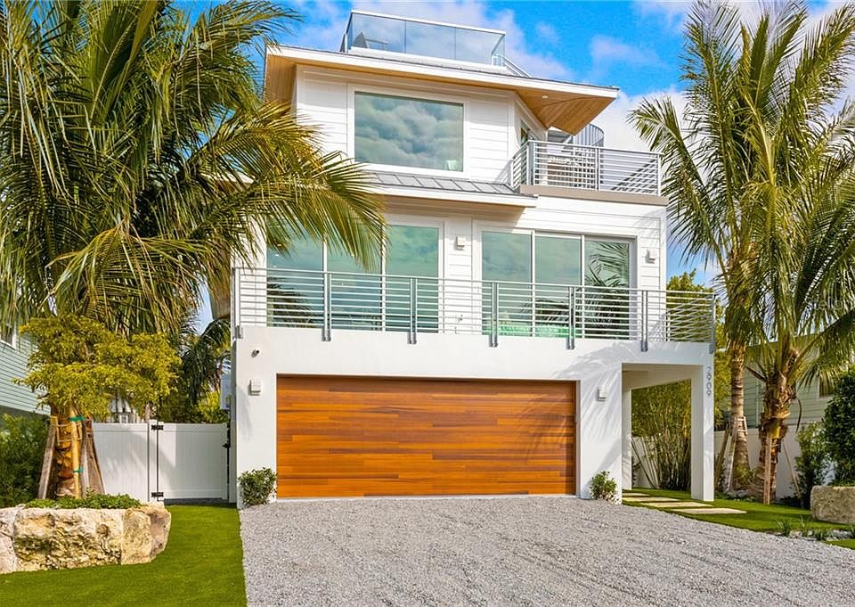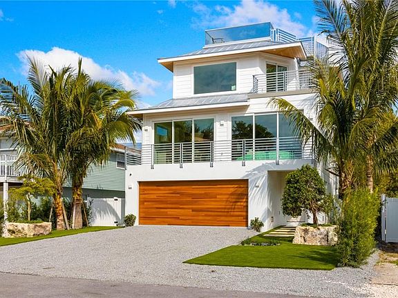 Stylish, smart and secure, this incredible newly constructed pool home sets the highest standards of luxury and comfortable living. Built by Mason Martin Builders and offered fully furnished, this stunning residence is the ideal permanent retreat or significant income-producing opportunity. Engineered Oak wood floors and soft tones complement expansive views of the outdoors the moment you enter the home. The open concept creates a connected space for gathering with the idyllic indoor-outdoor lifestyle the Gulf Coast is known for from sliders that grant access onto balconies. Smart-home automation ensures peace of mind and security with Yale Assure Touchscreen Smart deadbolt and garage with app access and Ring Pro Security doorbell. Sleek and modern, the kitchen is a fashionable stage for the family chef to perform culinary works of art, equipped with plenty of Quartz countertops, a generous waterfall edge island with seating, Wolf gas stove and appliances and SubZero refrigerator. Three guest bedrooms and a master suite with en-suite bath and personal balcony offer private domains and lavish relaxation for everyone. Designed for entertaining, treat guests to days spent in the resort-style heated pool with spa and sun shelf, then enjoy drinks at sunset on the rooftop deck with wet bar, firepit and captivating panoramic views of the Gulf of Mexico. Not a single detail has been untouched to feature upscale and thoughtful finishes, including Cyprus soffits and Galvalume steel roofing, impact glass windows throughout, porcelain in the bathroom floor and walls, 7" baseboards, Moen and Koehler fixtures, numerous large Samsung Smart TVs and artwork included, two-zone SONOS audio system in the living room, kitchen and pool area, elevator and more. This is the quintessential coastal retreat.