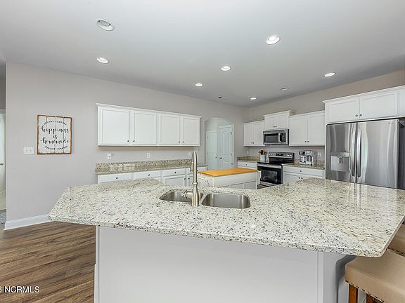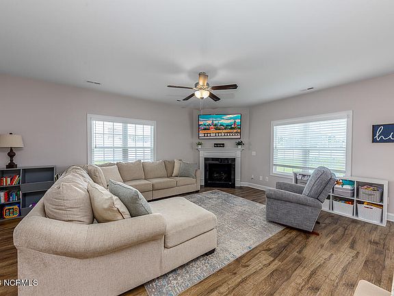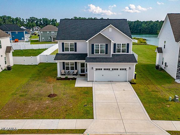 Upon arrival, you'll be captivated by the beautiful exterior with a covered front porch, a large driveway pad, and established flower beds. Step inside the inviting foyer and be greeted by the warmth of natural light that fills the open concept living spaces. The expansive living area provides a wonderful space for relaxation and entertaining, featuring waterproof laminate flooring, high ceilings, large windows, and a cozy, corner, gas fireplace. The well-appointed kitchen is a chef's delight, boasting stainless steel appliances, granite countertops, a center island, a breakfast bar, ample cabinetry, and a pantry. Enjoy casual meals in the sunny breakfast nook or host memorable gatherings in the formal dining room. The First-floor laundry area is adjacent to the mudroom. Retreat upstairs to the luxurious primary suite, a private oasis that offers a spacious, peaceful atmosphere with plush carpet, tray ceilings, and TWO generously sized walk-in closets. Pamper yourself in the spa-like primary bathroom, complete with a soaking tub, a separate walk-in shower, dual vanities, and a private restroom. The three additional spacious bedrooms share a full-sized bath. Step outside to the inviting backyard. Enjoy al fresco dining on the covered patio. The FULLY FENCED IN backyard offers a serene atmosphere perfect for any and all desired occasions. Energy efficient heat pump, windows, and wall and ceiling insulation values. Natural gas fireplace and Rinnai tankless water heater for more efficiency. Conveniently located minutes to Historic Downtown New Bern with area shopping and dining and only a short drive to MCAS Cherry Point. Don't miss your chance to own this ''like new'' residence in New Bern!