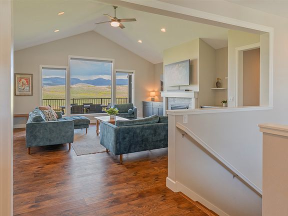 Welcome to this stunning, like-new home, perfectly situated on a premier lot within the coveted Mountain View Meadows southern loop on Big Timber. Upon entering, you're greeted by large windows that bring the views of this property to life. The spacious living room features vaulted ceilings, modern built-ins, and a cozy gas fireplace. It flows into the open-concept kitchen that checks all of the boxes: a large island, soft-close cabinets, under-cabinet lighting, tiled backsplash, tons of counter space, granite countertops, and an adjoining dining room. From the dining room, double glass doors lead you to the massive back deck that is perfect for entertaining guests and it will make sunrises your favorite time of day as you’ll enjoy the breathtaking views of the eastern hillsides and the Elkhorn Mountains. The primary suite is a true retreat bathed in natural light. It features tray ceilings, a custom-built walk-in closet, access to the balcony, plus a stunning en suite bathroom complimented by a soaker tub, large tiled shower, and double sinks in the wide granite vanity. On the main floor, you'll also find a second bedroom/office, a full guest bathroom, large laundry room, multiple storage closets, and access to the heated garage equipped with a 240 V outlet for charging an electric vehicle. As you descend the wide and open staircase–great for easy movement between the two spaces–you enter a large entertainment room ready for all your fun activities. Two additional spacious bedrooms and a full bathroom complete this level that has walk-out access to the large backyard, complete with a covered patio including electric hook-ups for your future hot tub. This daylight basement has tall ceilings, is flooded with natural light, and provides you space to expand. There are two additional framed-out areas bursting with potential to be completed if the next owner desires more livable square footage. One of these spaces has its own entrance from the backyard, making it ideal for a separate workspace. Without a doubt, you’ll experience true luxury living in this contemporary home! To schedule a showing, call Breena Buettner at 406-302-8257 or your real estate professional.