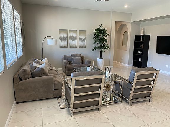 Discover this stunning 3-bedroom, single-story home located in a prestigious gated community, perfectly blending modern design with comfort. Situated on a desirable corner lot, this upgraded residence features an expansive great room, ideal for entertaining, and a spacious primary suite complete with luxurious his and hers walk-in closets and a large bathroom retreat. The home boasts a large backyard, perfect for outdoor living, and offers the convenience of a carpet-free environment. Within walking distance to Pinecrest Academy, Sloan Canyon, and Adventura Park, this home offers an unbeatable location for families. Don't miss this exceptional opportunity! Minimum 1 year lease term. Tenant pays all utilities.