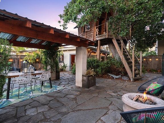Live in timeless elegance in this stately renovated 5+BR/2BA home with lower level apartment and converted, finished garage. Located on Alameda’s East End, this 4018 SQFT home welcomes you through a wisteria-covered gate into an English garden. From the gracious foyer, original woodwork and hardwood floors span the home. The living room is a grand space with a picture window and fireplace flanked by bookshelves. The spacious dining room boasts leaded glass cabinets, and adjoining upgraded kitchen includes a Wolf stove and a marble farmhouse sink. Enjoy your morning coffee in the large breakfast nook with a garden view. The first floor is complete with a full bath and laundry area. Upstairs find three bedrooms, a sleeping porch, and a full bath. The giant primary bedroom has casement windows and a walk-in closet. Surrounded by the backyard’s mature landscaping, eat al fresco under the covered gazebo, gather around the gas firepit, or climb the magical treehouse for a retreat. The casita makes for a great office or playroom. Through a separate entrance, the basement apartment has three bedrooms, a living area and kitchen. A gated tandem driveway provides many parking spaces, and the nearby transbay bus is a convenient commute. Top schools, shopping, dining, parks, beach are nearby.