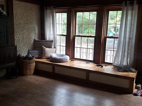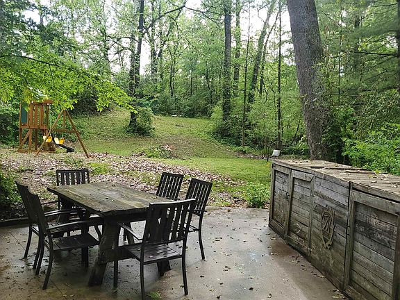 Surrounded by woods this very private location is conveniently located close to amenities - uniquely designed and recently updated two story home on 2 acres setting - from front door entry you will have open floor plan with LR DR and kitchen combo - wood ceilings add warmth and character - new kitchen with granite counters and copper sink - stainless appliances plus new dishwasher - wood burning stove - pantry - spacious outdoor dining area off kitchen with beautiful view offers great party area with outdoor TV - 1 full bath on main with laundry - upper level offers 4 bedroom and full bathroom with sunk-in tube and granite counters - nice closest plus staired 3rd level for storage or expansion space - 2 car detached garage -Replacement windows and New Roof in 2022 - nice upper yard for sports