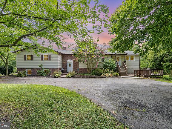 Welcome to this massive raised rancher in Northern Harford County with 6 bedrooms, and 3.5 baths, an oversized detached garage built in 2022, on 3 beautiful acres. Pull into the massive circular driveway and enter through the small wood porch. To the right is a short set of stairs to the basement and in front of you a small flight of steps takes you to the main floor carpeted living room. Windows off of this living area look out over the vast backyard, and a small hallway leads to the living quarters. Down this hallway is a full bath with tub/shower combo and three bedrooms, one of which is a large primary suite with a walk in closet and private full bathroom. Back in the living room, this area flows openly right into a dining room area with lvp flooring with French doors that open out onto the rear deck. This room flows into the large modern eat in kitchen with granite countertops, lvp flooring, backsplash, custom cabinetry and stainless steel appliances. There is room here for casual dining and this room opens up into a massive 400 sq ft carpeted family room. There is a second front door that opens up into this area, as well as a second set of steps into the large fully finished basement. The basement is like a second house in itself with 3 bedrooms, one of which has its own private half bath, another full bath in the hallway, and a large family/rec room area. This area has sliders that walk right out onto a small patio under the rear deck. One of the bedrooms also has sliders to a small rear paver patio. There is also a large laundry room, and large storage/utility room on this level. There is a deck (being sold as -is) with multiple levels that wraps around one side of the house. There is also a massive oversized detached garage that was built in 2022 just steps away from the house, with its own driveway/parking. This house has it all and is able to equip a family of any size, or even multi-generaltional living. It has a large cleared yard that is surrounded by trees on all sides. The possibilities here are endless! Come see it today! Updates are: 30 X 50 Pole barn built in 2022- with electric service/Available for sale separate- Car lift and compressor, 5 hard wire exterior security cameras, All Bathrooms renovated in 2020, Kitchen renovated in 2020, New Carpet 2020, New LVP flooring in kitchen and dining room- 2020, Entire interior painted - 2020, All new windows- 2021, New roof- 2020, Gutter guards on house and garage- 2022, Mature landscaping with well placed perennials, New HVAC- 2020, New plumbing- 2020, New UV water filter for well 2020, New Electric Hot water heater- 2020, Dual tank water softener system installed 2022, Well pressure tank- 2020. New well pump- 2021 2 chimneys o New cement crown and caps 2023