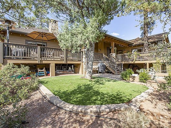 This Chaparral Pines mountain home has all the ''bells and whistles''! The single-level, split floor plan features 4 bedrooms/3 baths plus a hobby room/office, accessible by separate entrance. Custom touches at every turn -- 24' slate tile floors, solid alder doors, custom alder cabinetry, alder built-ins, stone floor-to-ceiling fireplace, ceiling beam work in the living areas and master bedroom. Wood flooring in all bedrooms in 2019, kitchen remodel includes Quartz counters, basin sink, subway tile backsplash. Enjoy outdoor living and fabulous mountain views under a spacious covered zero maintenance deck that were recently upgraded to be more spacious and expansion. Or, enjoy the patio area with gas fire pit. This low maintenance home is stone and cement board siding with metal garage doors, a spacious 3-car garage with a Mud Room/Desk area and a private downstairs office accessed by a separate entrance. If a 5th bedroom is desired, current owner has plans to convert the media room to a 5th bedroom at minimal cost. Pinon Membership available, if buyer elects. Come see this ideal home now!