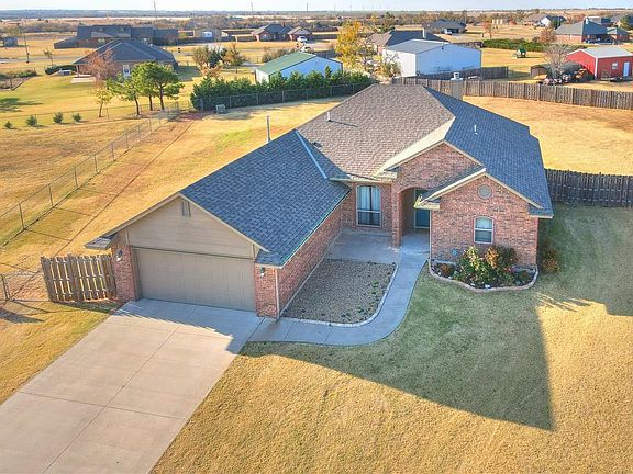 Move-in ready home in highly sought after Circle V Estates! 3 beds+study. Open floorplan, great for entertaining. Beautiful and neutral tile floors in main living spaces, carpet in bedrooms & study only. New carpet in guest hallway and master bedroom. Spacious living area features a cozy, corner wood burning fireplace. Kitchen boasts granite counters, breakfast bar, pantry, gas cooktop and custom cabinetry. Refrigerator stays! Master bedroom is a great size and has door to patio. Master bathroom is like a retreat with a whirlpool tub and separate walk-in shower, marble double vanities and a very large walk-in closet. Awesome covered back patio. Fully fenced backyard. All this on a roomy 1/2 acre lot with a gate wide enough for a 60" mower and trailer. Don't miss this one!