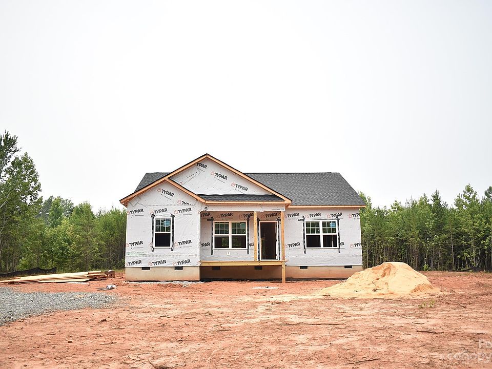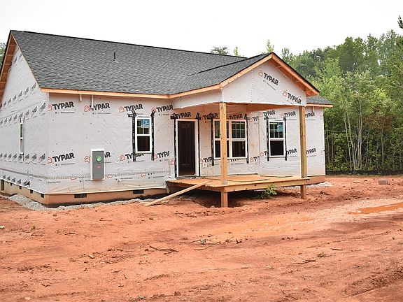 Newly constructed home available soon in the Clover area! This single story floor plan is located in a quiet, rural area on a low-traffic road. The 1443 sq ft home features a granite countertop kitchen with white shaker cabinets and a spacious walk-in pantry. The open floor plan connects the kitchen and dining area to the spacious living room. Off of the dining area is a comfortable covered back porch; perfect for a private afternoon retreat. The primary bedroom features a large walk-in closet and private bathroom, also with granite countertops. An enclosed laundry room adjoins the kitchen and dining area. Stylish exterior with vertical board and batten siding on the front. Private well and septic system. Energy efficient heat pump with high (14 Seer) efficiency rating. Driveway and parking pad will be concrete.