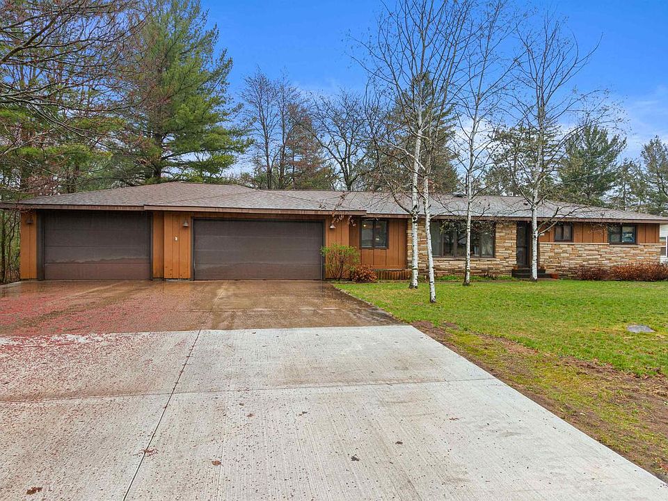This well cared for one owner 4 BDR, 2.5 BA ranch home with 3 car plus attached garage in the City of Stevens Point has so much to offer. Nestled on a spacious double lot in a tranquil neighborhood on a generous 0.65 acres, this home offers over 2200 sq feet of living space with great curb appeal and has been well maintained. The main level offers 3 bedrooms, full bath, half bath and an open & airy kitchen/dinette area, iving room, dining room, as well as a 4 season room with built in hot tub that offers amazing views of your private backyard. The kitchen has a spacious & bright layout with lots of counter space, ample storage, and is open to the dinette area & 4 season room with a convenient half bath. The living room features built in book shelfs and a double-sided stone wood burning fireplace so you can enjoy it in both the kitchen/dinette area and the living room on those cold winter nights.,Patio doors in the 4 season room give you an abundance of natural light and lead you to your oversized deck overlooking an unbelievably beautiful partial fenced in wooded backyard paradise with mature trees and so much privacy. Lower level has a finished family room with wet bar, full bath as well as a 4th bedroom with an egress window. There is also a large unfinished storage area plus a crawl space for all your extras. The exterior of the home has wood & timless stone siding & is nicely landscaped with an underground sprinkler system and mature trees that keep your yard private in the summertime as you grill on your deck. Attached 3 plus car garage is insulated and has a workshop and a separate storage area off of the back. Excellent location with access to many amenities & quick access to I-39, shopping, and many restaurants to choose from. If you can see yourself living here, don?t hesitate to see this home today! Seller states the following updates: Radon Mitigation System 2024, Furnace 2016, AC 2016, Water Heater 2011, Roof 2008.