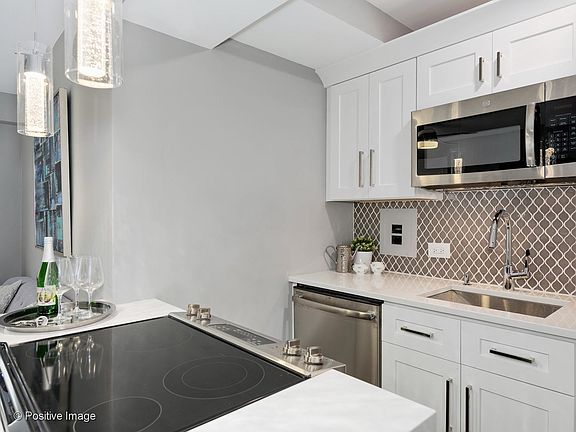 Beautiful new gut rehabbed 1 bedroom corner unit, high floor with west and south views. Brand new open kitchen with custom white shaker cabinets, quartz counters and island, stainless steel appliances, glass tile back splash, pantry. Upgraded bathroom with standing shower, floating vanity, contemporary tiles. Hardwood floors throughout. Lots of closets. Building has 24 hr doorman, large common back patio terrace, laundry room, garage parking onsite for $160 p/m. Great location in east Lakeview. Close to the lake, beach, harbors, parks, bike path, shopping & entertainment, Trader Joe's, Mariano's. Express buses and Belmont train station. Low assessments. No rental cap.
