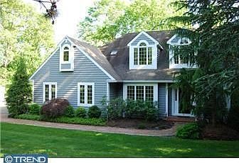 KING'S LAIRD A wooded surrounding provides an unsurpassed setting with pond for this 4 BR 3.5 BA custom Wm Worthington home tucked away off the road close to Solebury village. The heated pool and spa is easily accessible from the large rear main level deck or finished lower level entertainment center with bar, FR with gas stove, billiard room and 4th BR and bath. The second level balcony overlooks the vaulted ceiling LR with sky lights and stone fireplace. Lower and main floor have hardwood flooring. Main floor BR opens to the deck and has full bath with separate shower and tub. Entry from the two car attached garage to the laundry room. Additional 1 1/2 car detached garage. Dining room fireplace is gas fired and the Great room is wood burning. Sky lights in the Great Room, Main Bedroom and main bath. Main section of the house is Heat pump with oil back up. Lower level has separate heat pump.