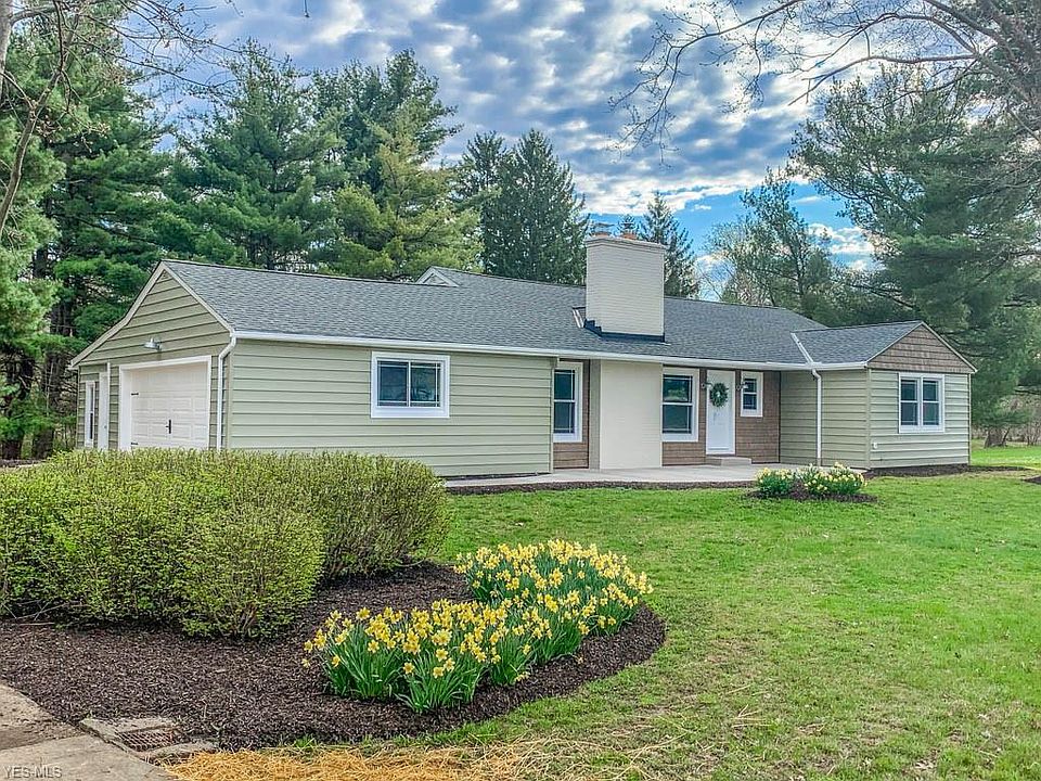 Call or text Listing Agent Jose Medina at 330-605-9185 for a private showing. Completely remodeled 3-4 bedroom ranch on an acre in Twinsburg schools! New flooring and fresh paint throughout! This home has such a grand entrance with an open great room, dining room and kitchen with vaulted ceilings and a shiplapped fireplace. Find your culinary inspiration in the brand new kitchen with stunning quartz countertops, tile backsplash, stainless steel oven/range and dishwasher plus a fantastic breakfast bar. Down the hall, the master suite boasts vaulted ceilings, a walk-in closet and a completely redone private bath with a new vanity, commode, light fixtures, tile flooring and tiled walk-in shower. There are 2 additional bedrooms with large closets and a full bath with a new floating vanity, tile floor and tiled shower/tub combo. Enormous flex room off of the kitchen with access to the garage and huge windows - could make a wonderful office or mud room. Extra living space in the walkout lower level with a finished rec room, a fireplace, remodeled half bath and a possible fourth bedroom. All new windows, new furnace, new central air, new septic and more! Enjoy the great outdoors from your new back deck or new concrete front patio. 2-car side load garage, too! Amazing location minutes from downtown Hudson shopping and restaurants. A must-see home!