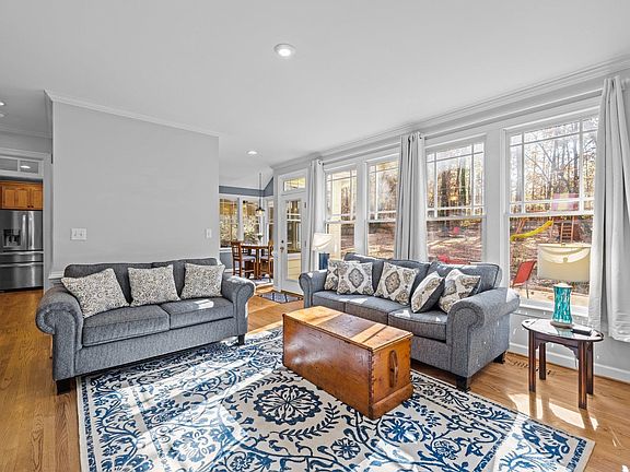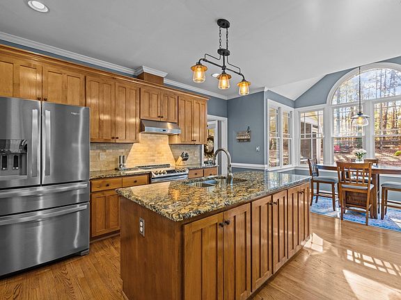 Welcome to your dream retreat! This stunning 4-bedroom home is peacefully situated on a wooded lot at the end of a quiet road, and boasts an expansive yard, perfect for outdoor gatherings. Step in from the rocking-chair front porch to an open floorplan with a spacious kitchen and oversized center island, ideal for your culinary adventures. You'll love the gorgeous hardwood floors and fresh updates throughout, plus the nice-sized bedrooms, spacious laundry area, and an extra area for recreation in the bonus room situated over the 2-car garage. Outside, you'll find plenty of space for relaxing or entertaining guests with a screened-in porch, deck and yard with a fire pit! Convenient location, not far from local parks and the Kraft YMCA.