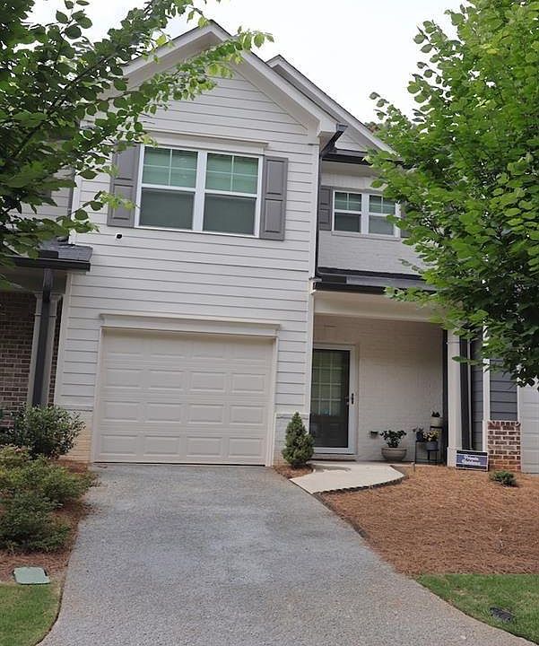 Stylish Townhome in the Desirable Stoney Pointe Neighborhood Step into a thoughtfully designed 3-bedroom, 2.5-bath townhome located in the highly sought-after Stoney Pointe community. This home is perfect for those who value both style and functionality. The open-concept layout on the main floor creates a welcoming space ideal for entertaining or simply enjoying everyday life. The kitchen is a standout feature with sleek white cabinetry, durable granite counters, and a striking white tile backsplash. A walk-in pantry provides plenty of room for organization, and all stainless-steel appliances are included to make your move effortless. The dining area opens up to a private patio overlooking a peaceful wooded area, creating an ideal spot for unwinding at the end of the day or hosting friends. Upstairs, the spacious primary suite boasts elegant tray ceilings and a walk-in closet with plenty of storage for your wardrobe and accessories. Convenient pull-down attic access adds even more storage options. Two additional bedrooms, one of which offers built-in shelving for added flexibility, and a shared full bathroom to round out the upper floor. The one-car garage provides additional storage space for shelving or other needs. This gated community features amenities like a sparkling pool and offers the convenience of being just minutes from Hartsfield Airport. With an array of dining and shopping options nearby, you'll enjoy both privacy and accessibility in this prime location. Make this beautifully designed townhome in Stoney Pointe your own and experience the perfect blend of comfort and convenience. Some photos have been digitally enhanced to help you visualize the possibilities of this inviting space.