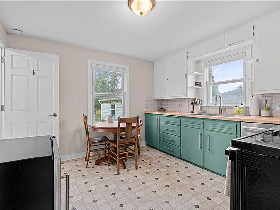 Stylish shiplap accent wallEat-in dining areaBeautiful cabinetryTwo bedroomsLarge windowsBold accent wallFully fenced backyard