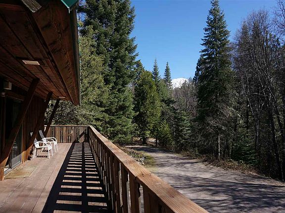 Private Mt Shasta. mountain chalet with mountain views and privacy. This property shares a property line with National Forest Lands providing endless hiking and exploring from your door. This Prime location is also a short distance to world class fishing, Lake Siskiyou Recreation and an 18 hole golf course. Incredible enclosed Yard offers an enchanted garden including abundant flowers, fruit trees and guest sleeping quarters or art studio. This home has sturdy beamed ceilings, wrap around decks, a Shrader Wood Stove, and 3 levels, with a full bath on each level. Much to explore.