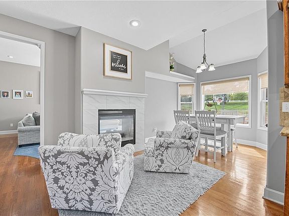 Price reduced $10K, move in before Thanksgiving! Beautiful 1.5-story home in Highly Sought-After Winterset Valley! This 4-bed, 3-bath gem features wood floors throughout, a spacious kitchen with granite countertops, large walk-in pantry (with garage pass-through), and a cozy breakfast area with a see-through fireplace connecting to the living room with floor-to-ceiling windows. Main-floor primary suite includes a private deck for your morning coffee, double vanity, jetted tub, walk-in shower, and generous walk-in closet. Upstairs offers three large bedrooms—all with walk-in closets—including one with a private on-suite and two sharing a Jack-and-Jill bath. The unfinished basement has an egress window and is stubbed for a bathroom, ready for your Vision. Outside enjoy deck, patio, and large yard perfect for entertaining with basketball court area! Winterset Valley amenities include three pools (including a competition-size and water park-style), tennis courts, playgrounds, community center, over 10 miles of wooded walking trails, fishing lakes, and more—all minutes from Longview Lake, golf, shopping, dining, and highway access! HOA WEBSITE https://www.winterset5.com/
