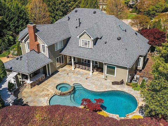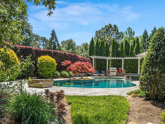 Quality-built home in the heart of desirable Stonemoor - sophisticated living at its finest. Perfectly situated on a quiet cul-de-sac lot with a circle driveway. The grand 2-story foyer with curved staircase seamlessly connects the living areas including the keeping room and handsome main-level study. The main floor primary suite with tray ceiling has been recently updated with a spa-like bathroom and gorgeous soaking tub overlooking your outdoor oasis. The gourmet kitchen includes a Viking gas range, wall oven, microwave, and warming drawer, and the breakfast nook overlooks the beautifully landscaped backyard. The expansive outdoor living area is a true retreat offering a saltwater pool, spa, full kitchen, dining area, full pool bathroom, and raised gardening space. With a 5-car garage and walk-up storage, this home has it all. Systems include water softener, reverse osmosis filter, and generator. Community amenities include pool, tennis, and walking trails. From the meticulously designed interiors to the resort-style outdoor amenities, every detail of this home is perfection.