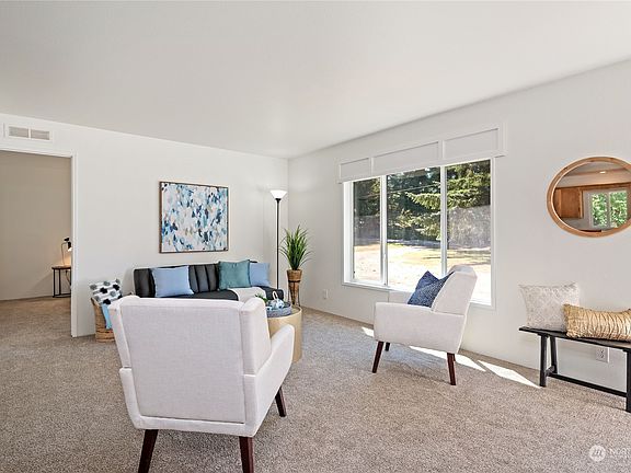 This peaceful and bright single-story home is just 3 years old! 2 Beds / 1.75 Baths + Bonus Office/Den. Situated on a sunny 1-acre lot in a desirable Poulsbo neighborhood. Community beach access on the shore of Hood Canal. Eat-in kitchen and dining room, open-concept living area, coat closet, and laundry room. Primary bedroom with a walk-in closet and ensuite bathroom at one end of the floorplan. A second bedroom, bonus room, and full bath are on the opposite wing. Move-in ready home with new carpet, a freshly painted interior, upgraded landscaping, and clean gutters. Plenty of outdoor space on this level acre with a shed for storage. Enjoy quiet privacy and natural views, surrounded by a greenbelt. Convenient access to Poulsbo or Kingston.