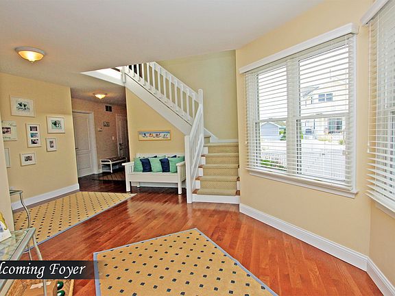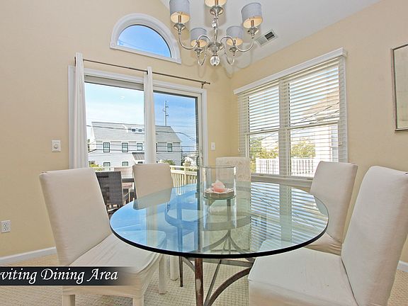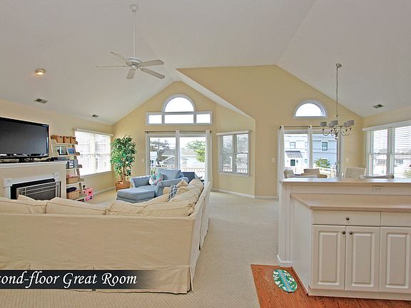 This charming two-story, upside down home features four generously-sized bedrooms and three full baths. The second-floor great room with cathedral ceilings, features a bright and airy living room perfect for entertaining during the day and a crackling fireplace where you can cozy up at night. Meals are taken to the next level as you prep in your fully-equipped kitchen and dine in your intimate & tasteful dining area. Enjoy cool breezes as you step onto the second-floor deck or head on out and take a short walk to the bay, beach, or town. This home is the perfect seashore retreat!