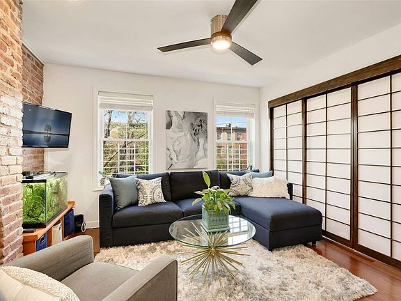 This charming and bright 2 bed, 1 bath condo with very low monthly HOA is located on distinctive doctor’s row in Historic Harsimus Cove. The home offers tons of character with meticulously maintained hardwood floors, exposed brick & custom shoji screens. There are two bedrooms at opposite ends with a beautifully designed bath between them. The kitchen features granite countertops, stainless appliances, vented hood & breakfast bar. Additional key features of the home include a new tankless water heater, brand new in-unit washer/dryer, central heat/AC & Elfa closet organizational systems. The jewel is a large quiet terrace with low maintenance composite decking; perfect for those balmy summer nights! This gorgeous home is in a central location in Harsimus Cove: 1 block from Keyfoods & Citibike with a short walk to Grove St. PATH.