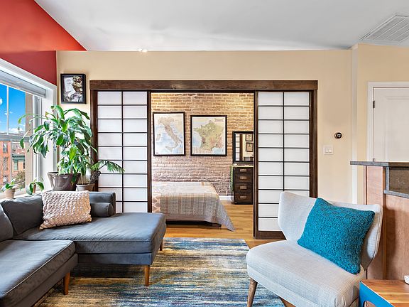 Old World charm merges with a contemporary Zen feel in a traditional row Home in Harsimus Cove to produce a two bedroom and one bath condominium that boasts both rare outdoor space and one off street parking spot! Poised on 4th Street between Jersey Avenue and Coles Street this darling unit boasts many desirable and hard to come by assets. Contemporary central kitchen with center island boasts efficient cabinetry, stone countertops, and new GE Café series oven/range with vented hood. Unit also features hardwood floors, exposed brick detail, new vanity in newly vented bathroom, new tankless hot water heater, vented washer/dryer in unit, and central air and heating with Nest thermostat. Striking built-in Japanese screens provide a focal interest and provides a creative way to flex space to seamlessly expand the use of the central living area for various uses as well as being a true bedroom. The unit spotlights a convenient deck for much desired outdoor space off rear of unit for weekend brunches, evening cocktails, and impromptu summertime dining. But, most awesome of all, one coveted off street exclusively designated parking spot at the rear of building protected by garage door. Located beautifully and centrally to many of DTJCs best spots- restaurants, nightlife, coffee shops, markets, Hamilton Park, and just a short distance to the Grove Street PATH station making a commute to NYC a breeze! A rare two bedroom home that has that bit of everything at a price point your busy urban life demands. A home you will definitely look forward to Coming Home To.