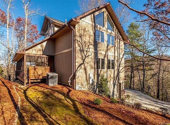 This unique mountain getaway feels like a modern day tree house with contemporary updates and plenty of room for guests. It has multiple outdoor living spaces and an incredible view of the Blue Ridge Mountains and winter views of the lake. The two story great room is filled with light, and you will find hardwood floors, wood ceilings and contemporary accents in the kitchen. Grill out on the deck with views in the background or read a book and sip your coffee on the screened in porch. Follow the handmade spiral staircase up to the mezzanine and private master suite and you will find vaulted ceilings and a huge master bath with a double shower and walkin closet. As an owner in Connestee you have access to over 15 miles of pristine hiking trails, 6 waterfalls, 4 lakes totaling over 230 acres of lake frontage, an 18 hole designer golf golf course, pickle ball, tennis, pool facilities and multiple top notch food and beverage options. Buyer pays one time $8000 amenity fee at closing.