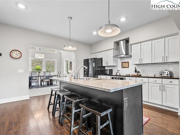 At the quiet end of a cul-de-sac, where the paved road stops and the peaceful mountain air begins, you’ll find a hidden treasure, an immaculately maintained and beautifully updated 4 bedroom, 4.5 bath home that feels like the best-kept secret in Newland. Tucked on over an acre of private land, this rare find is wrapped in the kind of quiet that soothes the soul, yet it’s just minutes from the charming heartbeat of downtown Newland. From the moment you step inside, comfort meets craftsmanship. Radiant floor heating runs beneath your feet, even in the garage, thanks to a state-of-the-art Navien system designed for cozy mountain winters. The kitchen is a chef’s delight, featuring gleaming granite countertops, stainless steel appliances, and a brand-new 2023 range. Step outside to take in seasonal mountain views from your composite deck, knowing the fiber cement siding and gutter guards mean less upkeep and more time to explore. Town water and sewer offer peace of mind, and the town maintains the paved access, including plowing and treating the road in winter, so you can come and go with ease. With two driveways and ample parking, there’s room for guests, adventure gear, or simply spreading out. Whether you're dreaming of a low-maintenance second home or a forever retreat in the heart of the High Country, this home offers a storybook beginning with every visit. The Mountains Are Calling...Are You Listening?