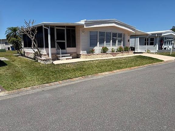 Experience the Sunshine State Lifestyle in Terra Palms Plantation! 291 Apricot Street Bradenton FL This large 24 X 44 home has alot to offer for the price. The large rooms and design setup make the spaces very versatile. The streamline lines outside give you possible planting ideas to add color and the covered carport leads into a screened-in lanai. In the back of the home there is a shed for all your storage needs. The side entrance brings you into the L-shaped kitchen where there is updated counters and cabinets in your all white kitchen. The washer and dryer are also located inside behind folding doors. The dining room and living area are drenched with sun-filled windows across the front and there is room for a larger table if desired and a built-in hutch for storage. The spacious living room gives you plenty of room to decorate and personalize the space. While walking down the hallway there are two storage closets for linens. The guest bath has a roomy vanity and tub/shower combination. The guest room has a queen bed, double closet, dresser, and night tables. The master suite presently has a queen bed but plenty of room for the remaining furniture and a king bed if desired. In the ensuite bath there is a walk-in closet, a large vanity, tiled floor with step-in shower. There is carpet and vinyl flooring throughout. This property is being sold partially furnished. Don't miss the chance to experience the serene living offered by this Community. This Community is a wonderful gated community with numerous amenities; Pickleball, bocci ball, horseshoes, shuffleboard, swimming pool with new spa, new clubhouse, extended covered lounge areas with firepit and a double outdoor built in BBQ area, new fitness center and lush green spaces. There is live entertainment and parties for every occasion. Bradenton and Sarasota offer shopping, dining and centrally located to a number of airports. A must see is the Sarasota Tiger Woods pop stroke and Tampa casino or just search for shark teeth on the beach. Included are utilities and amenities such as cable TV, Internet, water, sewer, trash removal, lawn care with the exception of electric service. The lot rent is determined by the community office.