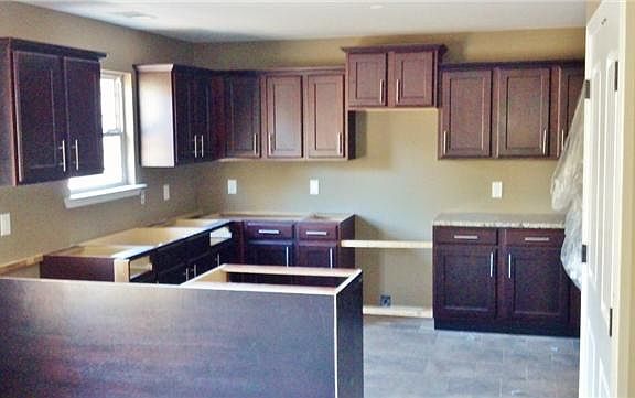 Brick front vinyl on 3 sides. 3 bedrooms downstairs. Granite counters in kitchen, tile in all wet areas and hardwood in great room. Fireplace. Beautiful treed lot which is back from the road.