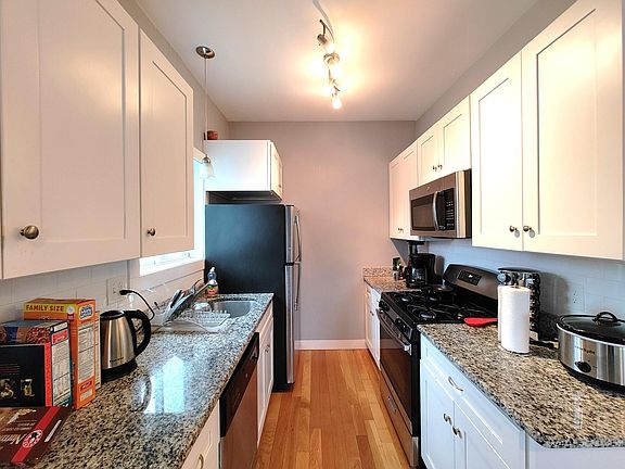 Full gut 2 years ago everything brand new including windows, exterior doors, trim, molding, outlets, walls, full insulation of exterior walls and sound insulation on interior, installing high efficiency tankless navien heating systems (most cost effective system avail for tenants) track lighting in kitchen, new carpet in common hall way. Brand new rubber roof under decking. New Hardwood floors throughout. Granite Counter tops Stainless Steel Appliances Dedicated exclusive laundry in Hall off unit. HUGE Deck off living room. High efficiency GE washer and dryer. Quality kitchen cabinets upgraded hardware, stainless appliances. Close to Harvard and Porter Squares. (Reference #142672)