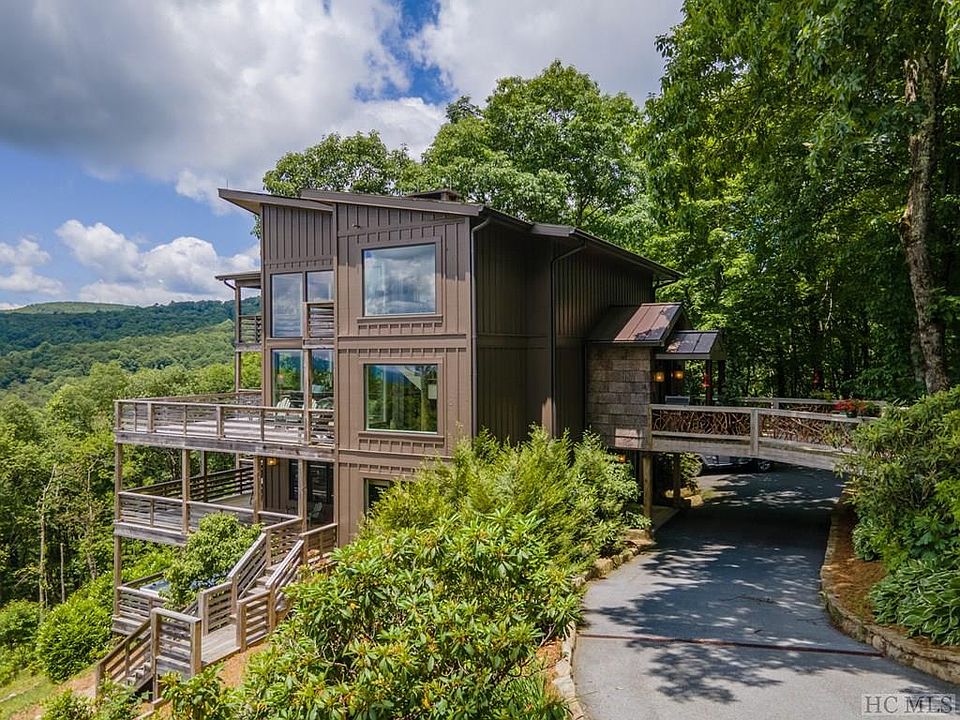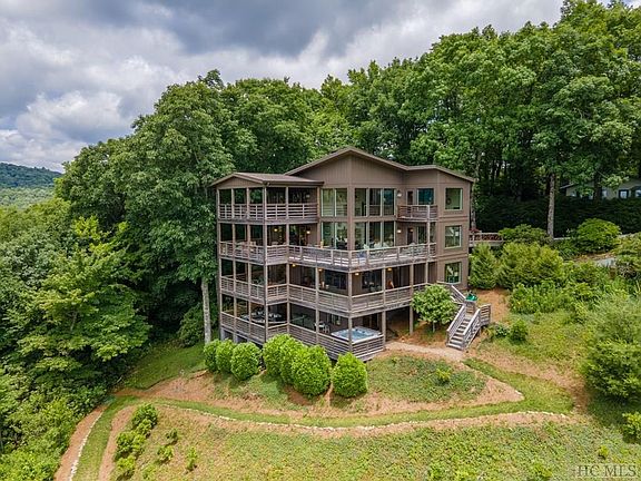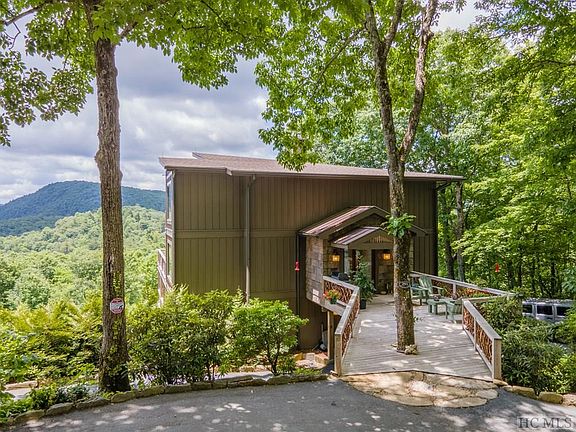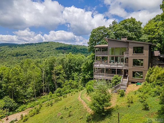 Broadview beckons. Located minutes from downtown Highlands and very close to Highlands Country Club is this modern, mountain estate. Situated on a double lot of nearly 1.8 acres, featuring 3 bedrooms and 3.5 baths... originally built in 1982 and completely reimagined and renovated in 2014 by the current owners. As you approach the home, the view emerges from behind the trees to reveal what makes this property so special and what gives the community its name - Broadview. The home is perched on a knoll looking out to Rabun Bald, Little Scaly Mountain, and Blue Valley. As you enter the home on the main level, you immediately notice the open living space... utilizing two stories of glass and bringing an unparalleled view right into the home. The main level features a formal living room with stone fireplace and gas logs and adjacent dining room, plus an open kitchen and casual den. The den leads out to one of the four covered Carolina rooms where you can enjoy more than 50 miles of views (in the distance you can even see Curahee mountain in Toccoa, Georgia). On the upper level you will find the owners' retreat that is complete with a loft overlooking the formal living area below. Off the loft you enter the owners' suite that features a large bedroom, double closets, a spa shower, heated tile floor, double vanities, a soaking tub, and a separate laundry center. Off the owners' sleeping area you have the highest Carolina room with the most commanding view on the property. Below the main floor is the guest level designed to allow guests their privacy while visiting. This area features a second entry foyer and butlers pantry, wet bar, and main laundry. Two en-suite guest rooms with heated bath floors are off the lower level family room with stone fireplace and gas logs. This level opens to another covered Carolina room above the treetops. On the terrace level you will find an outdoor hot tub/spa, the fourth Carolina room, gym, sauna, and future living space.
