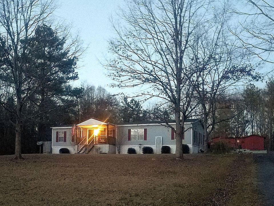This is a nice open floor plan modular home nestled on seven acres of beautiful private wood lands. Newly customized this year with rich textures and colors. All the tranquility desired with covered wrap-around decking outside. Has great landscaping. Detached apartment and two large storage buildings are on property. Has personal gym and paved drive with basketball court. New metal roof and HVAC too. Addional storage building next door also included! Great school system. Minutes from fishing on conservation lake. Plenty of room for a family to grow!