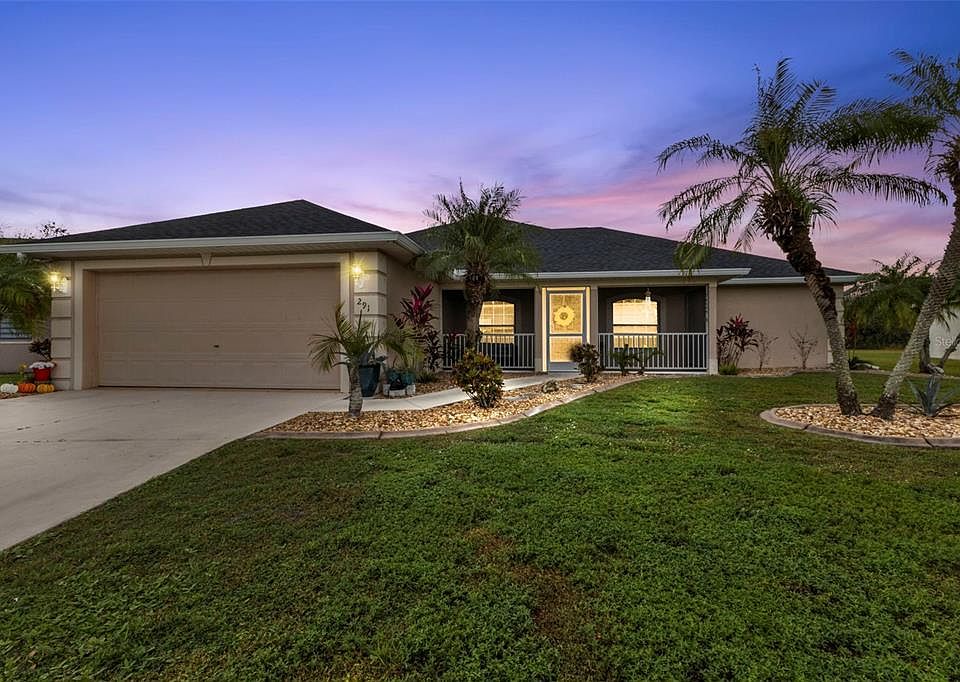 Price Improvement! This beautiful POOL home boasts incredible curb appeal and is ready for its new owners! Nestled in the sought-after, deed-restricted Deep Creek Subdivision, it sits on a quiet cul-de-sac in Flood Zone "X," meaning flood insurance is not required. Offering over 2,000 square feet of living space, this split-floor plan includes 3 bedrooms, 2 bathrooms, a 2-car garage, and a versatile den/office. Enjoy the convenience of a dinette off the kitchen, a spacious family/living room with vaulted ceilings, a screened front porch, and an inside laundry room. Brand New Roof (2024) and newer HVAC (2021) both with warranties provide energy efficiency and peace of mind. Step outside to a stunning screened-in pool with a relaxing waterfall feature. Punta Gorda, recognized as one of the best places to live in America, is known for its historic waterfront, charming shops, and excellent dining options. With boating and fishing as top attractions, this home is ideally located near I-75, just 10 miles from Punta Gorda Airport, and a short drive to a public boat ramp on the Peace River. This is a must-see property!