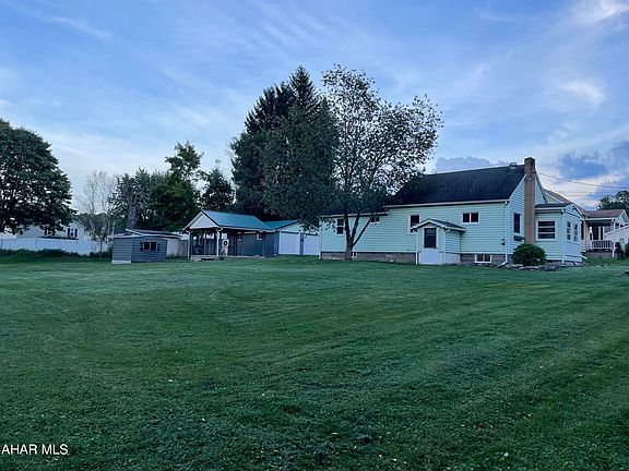 This well maintained two bedroom one bath home sitting on a large flat double lot would make a great starter home! There are two catch areas for coats and shoes one at the front entrance and one in the rear. The kitchen is open to the dining area giving it a more spacious feel. There are two bedrooms, a full bath and living room on the first floor. New flooring throughout the first floor and freshly painted. The second floor is used for walk up attic space. Kitchen appliances, washer and dryer are included. Outside you will find a two car garage and a covered pavilion for entertaining. The driveway was resealed in 2022. Come see what this home has to offer.