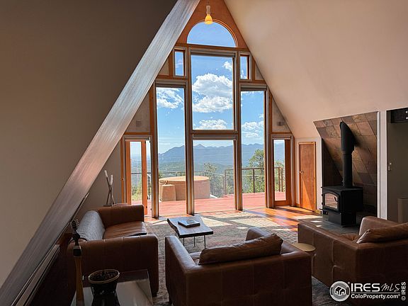 45K IN UPGRADES OVER THE PAST MONTH INCLUDING A NEW ROOF MAKE THIS HOME SHINE & READY FOR ITS NEXT OWNER AT AN UNBEATABLE PRICE! Some of the most expansive and unobstructed views in Boulder Heights and the area with a 300 degree panorama overlooking Boulder, Denver, and DIA, including the Flatirons and Indian Peaks to the West! The dynamic, all-encompassing view is showcased by floor to ceiling windows on the South side of the home. Bask in the views outside on the wrap around deck, in the hot tub, or from the balcony off the primary suite! The unbeatable location is further enhanced by rare end of the road privacy and easy year round access, including a South facing driveway. Innovative and custom artistic design will intrigue buyers who do not want a cookie cutter home. From rounded walls wrapped with sheets of copper and black granite rock to the stainless steel stairway to stained concrete kitchen countertops to a 25 foot tube shower replete with a skylight and mosaic tiling, you will be allured by the creativity put into curating this one of a kind beautiful close-in mountain retreat. An open floor plan with vaulted ceilings, Brazilian cherry wood floors, cherry cabinets, Quadra fire free-standing wood stove in living room, entertainment room with multiple flex uses, 2 mini-split a/c units (kitchen and upstairs bed), office in loft area upstairs, and attached 2 car garage. New septic tank in 2023 with Septic Smart certificate in hand. Well + cistern provide 3 GPM from a well test done on 4/4/2025 which is available in docs. 2nd bedroom has a gas stove for auxiliary heat fed by a small propane tank that is self-filled at U-Haul at the bottom of Lee Hill Rd. Xfinity offers high-speed internet and tv (currently setup for 800kbps and can go faster if desired). Pre-wired for audio throughout with a hub in the closet by the front door. Buyer to verify sq ft.
