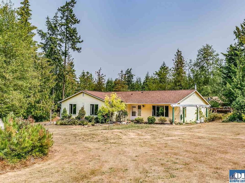 SHOP & HOUSE & PEACEFUL ACREAGE! TREE-RIMMED COMPLETELY PRIVATE & LEVEL 5-ACRES BORDERED BY DNR LAND WITH BEAUTIFUL 2008 SPACIOUS 2112 SF HOME WITH DETACHED 896' SHOP! Completely private 5 acres is minutes from shops, restaurants in Sequim.NEW HICKORY HARDWOOD FLOORS & carpet & updated kitchen, extra bonus room or 4th bedroom featured in this open-floor plan home with vaulted ceilings. 896 SF Shop was built in 2015 and is the ultimate man-cave or storage space. Private entry and very private property!