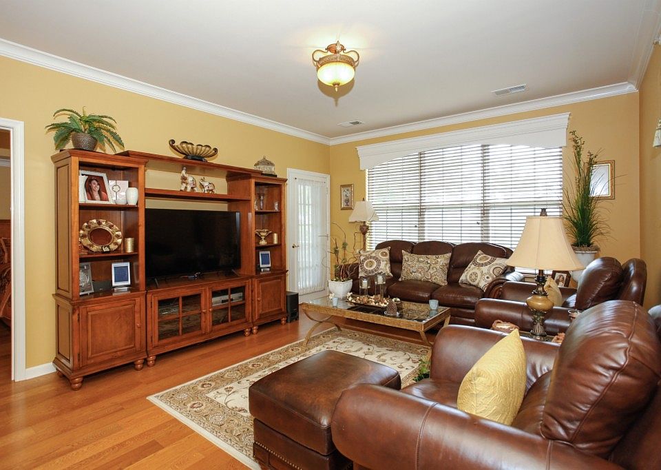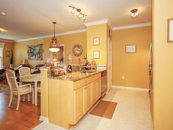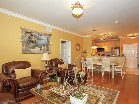 A designer showcase...no expense has been spared in upgrading this immaculate 2 BR/2BTH unit in the 55+ Community of Altair conveniently located off major highways. Move right in! This beautiful top floor unit boasts crown moldings and custom cornices, hardwood floors throughout living/dining and both bedrooms. Other custom upgrades include lighting, vanities and window treatments. The open kitchen features granite countertops, a marble & glass backsplash and stainless steel appliances. Laundry in unit and a terrace complete the unit. Amenities galore including community room with kitchen, exercise room, pool/hot tub, 2 parking spots, storage unit.
