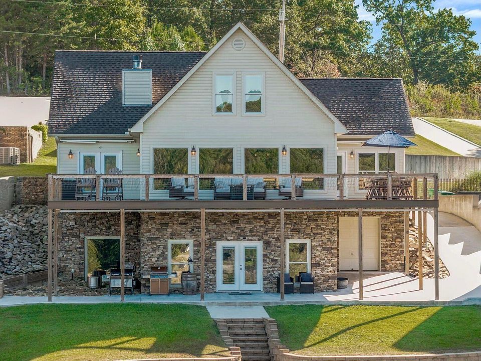 Smith Lake (Simpson Creek) One of the most convenient locations on Smith Lake from I-65! Main home has 4BR/3BA and guest house has 1BR/1BA. Year round water, double slip boathouse, big open water views. Main home has 3 levels, recreation room in basement. Retaining walls on the lakeside for easy lake access. This would be a great rental property! Both detached garage and a carport on property. This is a dream retreat just minutes from I-65, yet offering the peace and privacy of cove living with stunning main body views. This immaculate, renovated lake home combines modern comfort with timeless charm, making it perfect for full-time living or a luxurious getaway.