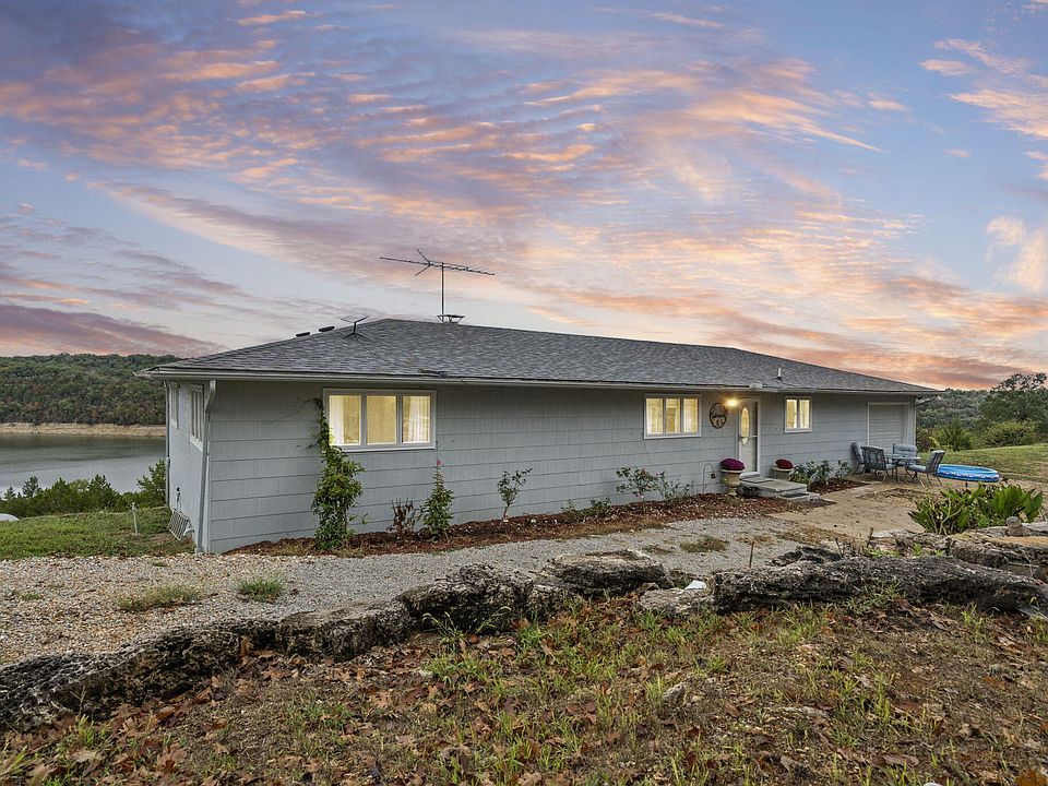 This move-in ready lakefront property on Bull Shoals Lake is being sold fully furnished! The asking price has been set appropriately, leaving room for modern updates that could enhance its value.Perfectly perched on 7.75 unrestricted acres with unobstructed 180 year-round lake views, this property includes a 3-bedroom, 2-bath main home with two living areas, panoramic windows, and a full-length covered deck where you can enjoy stunning sunrises and sunsets over the water.Two large outbuildings expand the possibilities: A 15'x25' outbuilding featuring an outdoor kitchen and lake views--ideal for entertaining guests. A 25'x50' event building with a large kitchen, restroom, soaring ceilings, and massive lake-facing windows--for weddings, reunions, or retreats.Your imagination is the limit--create glamping sites, ATV trails, an event venue, or a private lakefront retreat.Nearby attractions include:Bull Shoals Lake with 740+ miles of shoreline for boating, fishing, diving, and water sports.Mark Twain National Forest, Glade Top Trail, and Lutie Memorial Trail for hiking and exploring.Laura Ingalls Historic Farmhouse, Lost Woods Golf Course, and Peel Ferry for unique local experiences.
