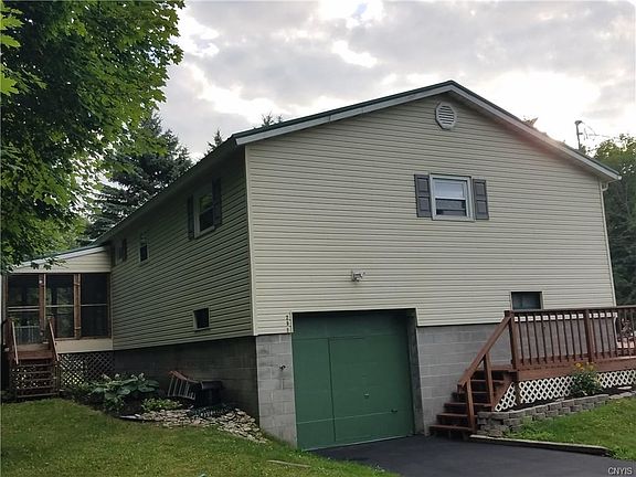 Great home and location! Enjoy this gem that's a short walk from Lake Ontario, Rudys, and SUNY Oswego. Featuring a large eat-in kitchen with breakfast bar. You can entertain or relax in your high ceiling, step down living room, dining room combination, that boasts a gas fireplace with access to a lovely screened in back porch. Three bedrooms, one full bath. Laundry space with washer and dryer. Large basement with storage, work area, and large heated and carpeted basement bonus room, perfect for a home business, playroom, exercise room or den. Drive in two-car tandem garage and a great, tiered, sealed and stained, deck to serve a variety of interests. Steel roof, hot water boiler maker, and vinyl siding. Living room thermal sliding glass door, thermal windows throughout. Naturally private lot, set back from the road with boarder pine trees. Expansive yard with fruit bearing apple, pear, and peach trees. Two front gardens with bountiful grapes, blackberries and strawberries. Storage shed ideal for riding lawn mower, tools, and more. Two air condidtioners and two dehumidifiers included. This fantastic home is move in ready and the owner can accomadate a quick closing.