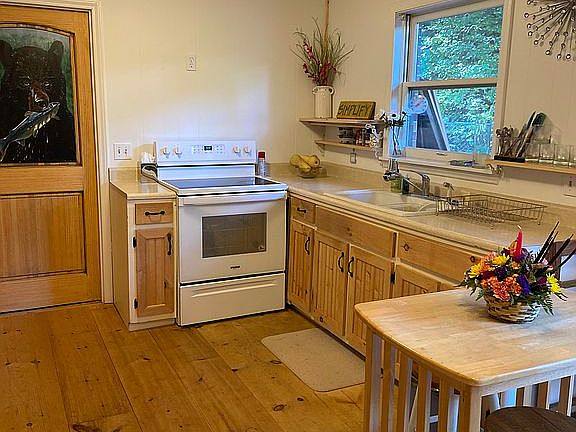 Four bedroom two bath brick home with a paved driveway in city limits includes two sheds, a woodshed , 2 year old appliances and 2 year old central air and heat in a quiet neighborhood with fenced back yard. Just a short walk to the Toe River, the town park and town.