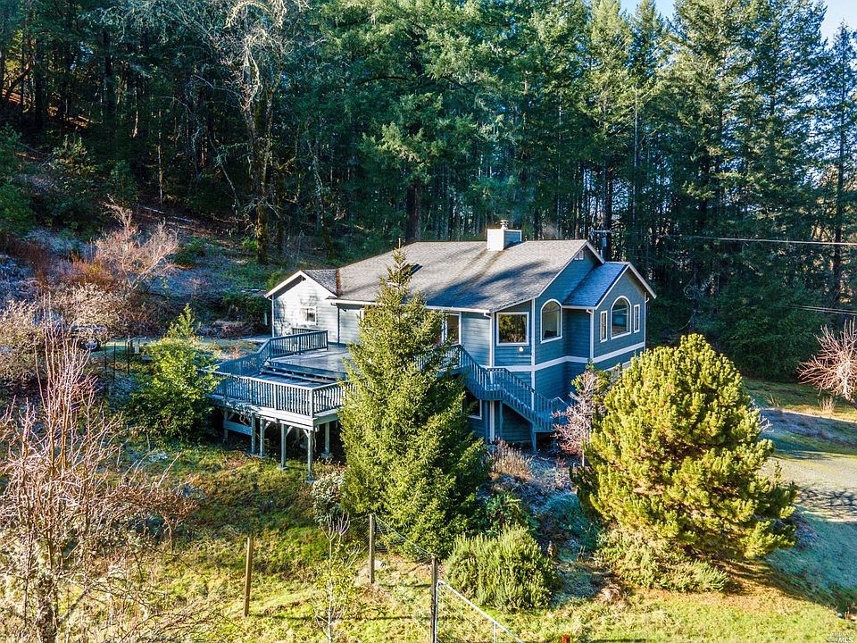 This custom home is conveniently and privately located just minutes from town. A fully equipped kitchen is the heart of the home and perfect for entertaining. Double french doors lead out to an expansive sunny south-facing deck. In this 2-story home, 100% of the living area is upstairs, easily accessed via an upper road. Downstairs, the double garage and workshop provide plenty of space for projects. With the orchard, fenced garden, and insulated greenhouse, you can grow your own food and put some by in the hallway pantry. The property itself is a mix of open meadows and a forested knoll. Water is provided by a reliable well. An RV hookup too! Zoned UR20.