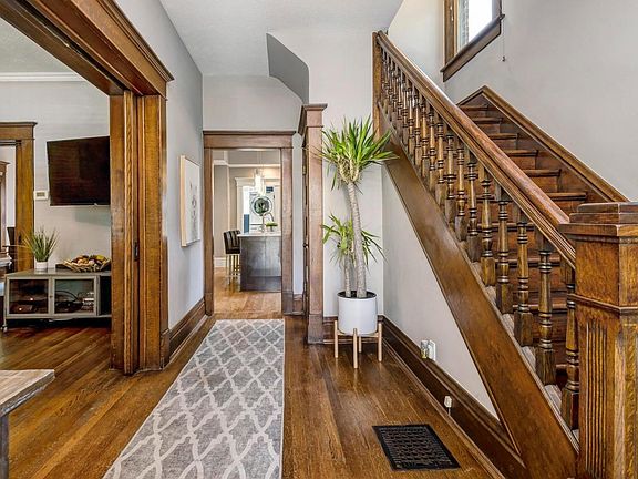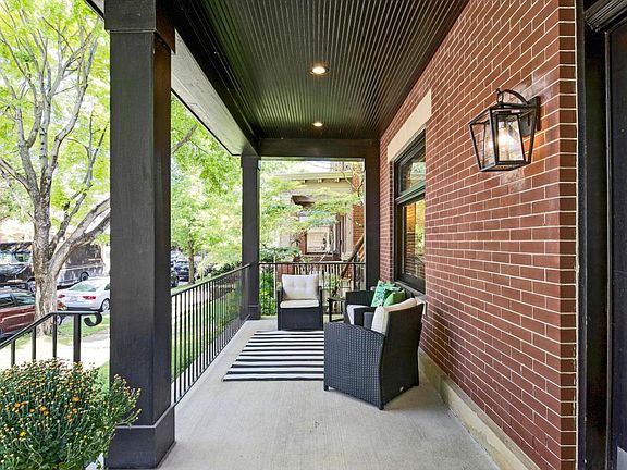 Charming 2.5 story brick home with a new large front porch! Hardwood floors throughout home. You'll love the original solid wood pocket doors. The updated kitchen has custom built cabinets with soft close drawers, wine refrigerator, quartz counters and SS appliances. The second floor has a spacious master bedroom with two closets, a remodeled bathroom with large walk-in shower, 2 additional bedrooms and one w/ door to semi-flat roof top (potential for roof top deck). Spacious 3rd floor is just waiting to be made into a grand master suite! Both the attic and basement are plumbed for a bathroom. New backyard wood deck/stairs and new privacy fenced backyard. This home is a car lover's dream with a spacious 4+ detached garage! A block from Schiller Park and near lots of restaurants.