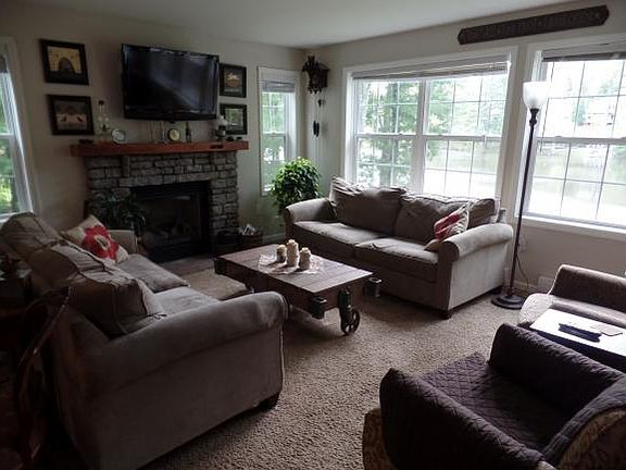 Exquisite 4 bedroom,3 Bathroom ranch home on peaceful,picturesque Pops Hobby Lake.Open concept 1st floor with a master suite,2nd bathroom,laundry room,gas fireplace in the living room and walkout to the Trex deck that overlooks the lake.Lower level features 3 bedrooms,full bathroom,large family room and a walkout to a concrete deck.All this and a double lot on this one of a kind lake house.