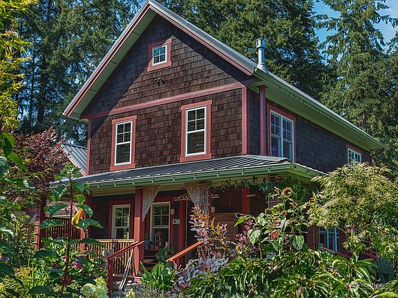 Welcome to Brigadoon! Paradise found once inside this truly unique homesite. This property has numerous features starting with the lavish landscaping of this fully detailed yard. The primary home offers entry level daily living with 3 bedrooms on the upper level. Bathrooms on all levels. Finished basement ready for that extra living space, gathering spot, theater or wherever you dreams take you. The satellite bedroom over the garage offers additional sleeping/entertaining space and is currently rented for $900 per month. Additional bonus room on entry level of garage for crafts etc. Yurt currently rents part time as Air BNB for over $20,000 avg. annually. 4 years running. All this and only blocks away from Irondale Waterfront Park.