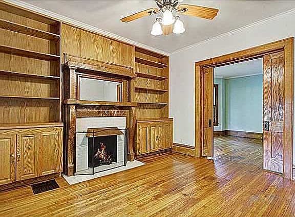 Nicely update brick (enlarged) foursquare 1 block off Schiller Park. Original oak floors throughout most of downstairs, 3 sets of pocket doors, fireplace with oak built-ins, stained glass, large updated kitchen with stainless steel appliances, sliders to covered deck and large yard. First floor laundry and half bath added. Owner's suite with private bath and walk-in closet. 3rd floor walk-up could be finished. Two paver patios in landscaped yard. Over-sized 2 car garage-