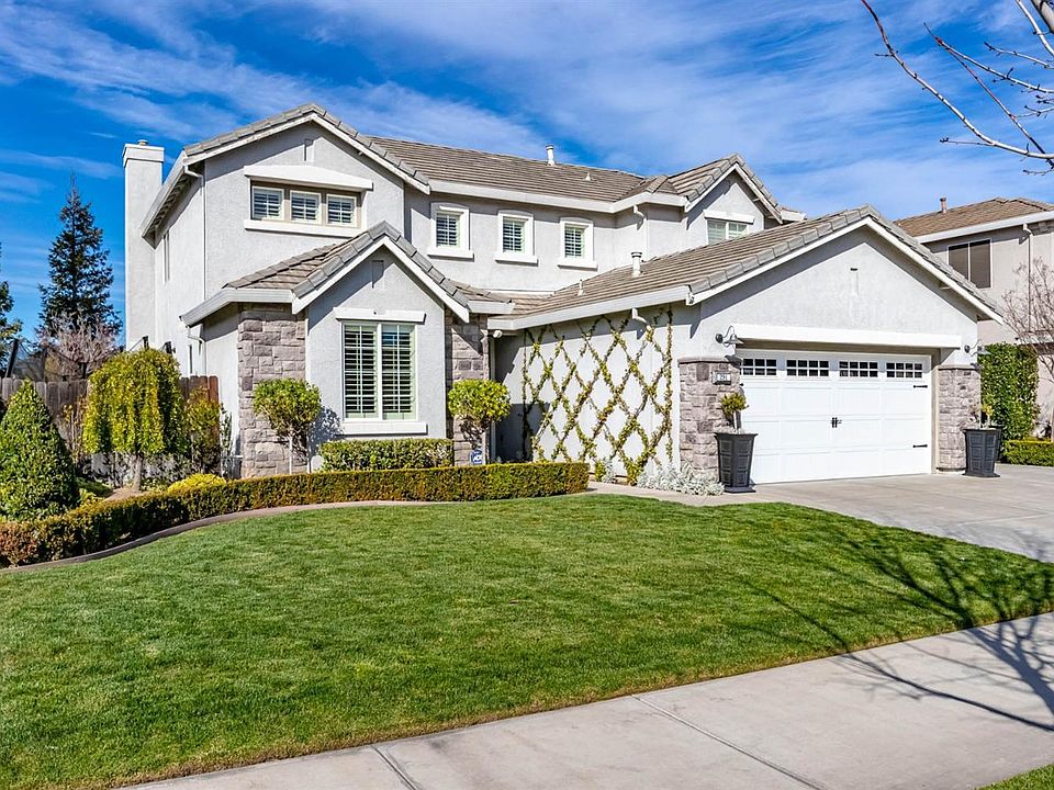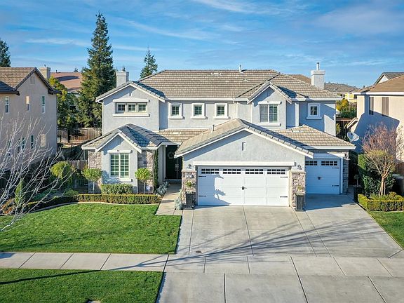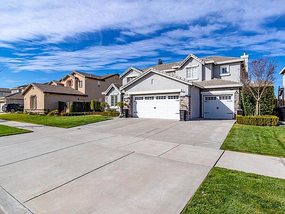 Welcome to 291 E. Wind Drive in the sought after city of Ripon! Prepare to be impressed! Custom front & back landscape with stonework set this home apart. Show stopping entry with soaring ceilings & spiral staircase perfect for the family photo. You will find hardwood floors throughout the main level along with a bedroom/den & full bathroom. Laundry room has cabinets, sink & french door. Formal living dining space has upgraded carpets, stone fireplace, shutters & custom lighting. Kitchen & family space is set up as a great room with breakfast nook, gas fireplace, Quartz counters including center island, pantry closet & newer Kitchenaid Stainless appliances! Upstairs you will find 4 total bedrooms including the master suite that has a soaking tub, dual vanities & TWO walk in closets! Custom landscaped backyard just installed & includes pool with spa, covered patio with stone detail, metal roof, counters/storage that is wired for sound & TV. Professionally designed landscape & lighting.