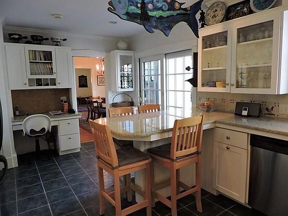 Pristine shingle style, restored home in the heart of the newly revitalized village of Padanaram in South Dartmouth, short distance from shops, restaurants, harborfront and New Bedford Yacht Club. Expansive, low maintenance front yard provides quiet & privacy from street. Enter through a handy mudroom, into fireplaced living room with many built-ins, dental molding, and sunny alcoves. This leads to a bright dining room and library, and then a remodeled kitchen with granite counters and higher end appliances. Light-filled hallway to the 2nd floor has varnished railings, leading to 2 guestrooms, full bath and small laundry room. The master bathroom has a dressing room that leads to a sophisticated tiled bathroom with double vanity, glassed-in shower and deep soaking tub. 3rd fl has harbor view, nautical mural on the ceiling; a perfect space for an office, family room or overflow sleeping quarters. All newer systems, Move right in! Town water/gas/sewer.