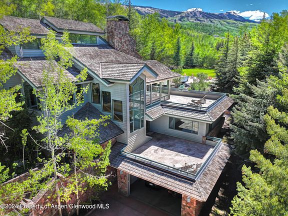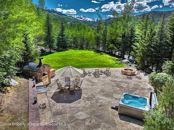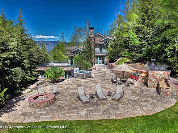 The finest home in Snowmass Village for entertaining. Almost 1.5 acres of priceless flat land and a very generously appointed ski chalet. Shuttle is located right across the street! 4 bedrooms and 5 bathrooms with close to 5000 square feet to enjoy seclusion in the mountains. This bright estate has 5 sundecks and patios surrounding the home on all sides. The massive manicured level backyard is perfect for any large gathering or celebration. Incredible direct views of Mount Daly and Snowmass make this home absolutely one of a kind. Complete privacy with views in all directions invite you to take in the beauty while being only seconds from skiing, hiking, biking, and golf. Soaring 30 foot ceilings and floor to ceiling windows in the great room need to be seen to be believed. Relax and unwind on your spacious private lawn with a full built in outdoor kitchen including custom Renato pizza oven and grills, hot tub, fountain, horseshoe pit, private trail, and a large gas fireplace to gather around after sunset. This legacy estate is located on an enormous double lot where no neighbors can view into the home, nor can anyone build within your sightline. You own almost the entire private Aspen forest above the home! Located on the very lower end of Faraway Road, Base Village is only one minute away. The top floor master bedroom with a huge indoor garden surveys the tallest peaks. Radiant floors, driveway, and forced air. Automatic shades in all large windows. Two separate home offices. Rare wood burning main fireplace is grandfathered in never to be built again. Incredible custom stonework and masonry throughout. Private owner's storage with wine coolers and fully integrated smart home capacity. Currently short term rented very successfully. A true connoisseur's residence- palatial and inviting. Don't miss this chance to own the very best.