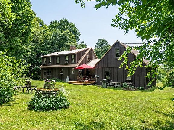 Would you like an 8 acre farm in an idyllic hilltop town where you have neighbors but can't see them? This rustic Cape with connecting 2-car garage and 2 outbuildings accommodates animals and equipment with added space for storage. The 3-bedroom, 2 bath home, features wide pine floors, kitchen cabinets, and closets doors - all made with timber harvested from the property. The kitchen has granite countertops, tile floor and stainless-steel appliances. The living room includes exposed hand hewn beams, large brick-hearth fireplace, and a concealed built-in cabinet. The living space has 4 heating sources - electric baseboard with thermostats in every room, pellet stove, fireplace and a Jotul wood stove in the kitchen. The house has a secondary electrical panel hard-wired to a 7000 Watt Generac gas generator. The roof on the house and garage were replaced with Forever Metal Roofing in 2018. Other equipment updated in the last 2-3 years includes washer, dryer, water pump and hot water heater. Front and back decks were built in 2017. A 2-stall horse barn, with tack room, built in 2014 is situated in a 1-acre field and has ample grass for grazing and space for a riding ring. The horse barn features a concrete floor, wrought-iron hardware and sliding stall doors. Plumbing and Electrical have been run to the barn. There is an additional hay/equipment barn that sits next to the horse barn that is 20 X 17 with ramp and sliding door. Delayed showings start on Friday, June 21, 2024 by apt.